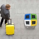 Litter bin composed of a supporting structure with steel coating, equipped with four inner liners for separate collection and aluminum lid with holes provided with conveyors in sheet metal. The inner liners are arranged in square composition. The cover is equipped with two gas struts to assist opening which are activated with the release of the snap lock.