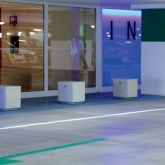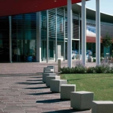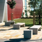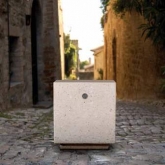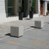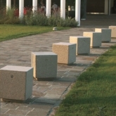 The cube-shaped CORALLO bollard is realized using a binding compound of white granite or coloured marble stone aggregate, bushhammered on the sides and its upper surface is dressed. It is treated against deterioration. Weight 245 kg.